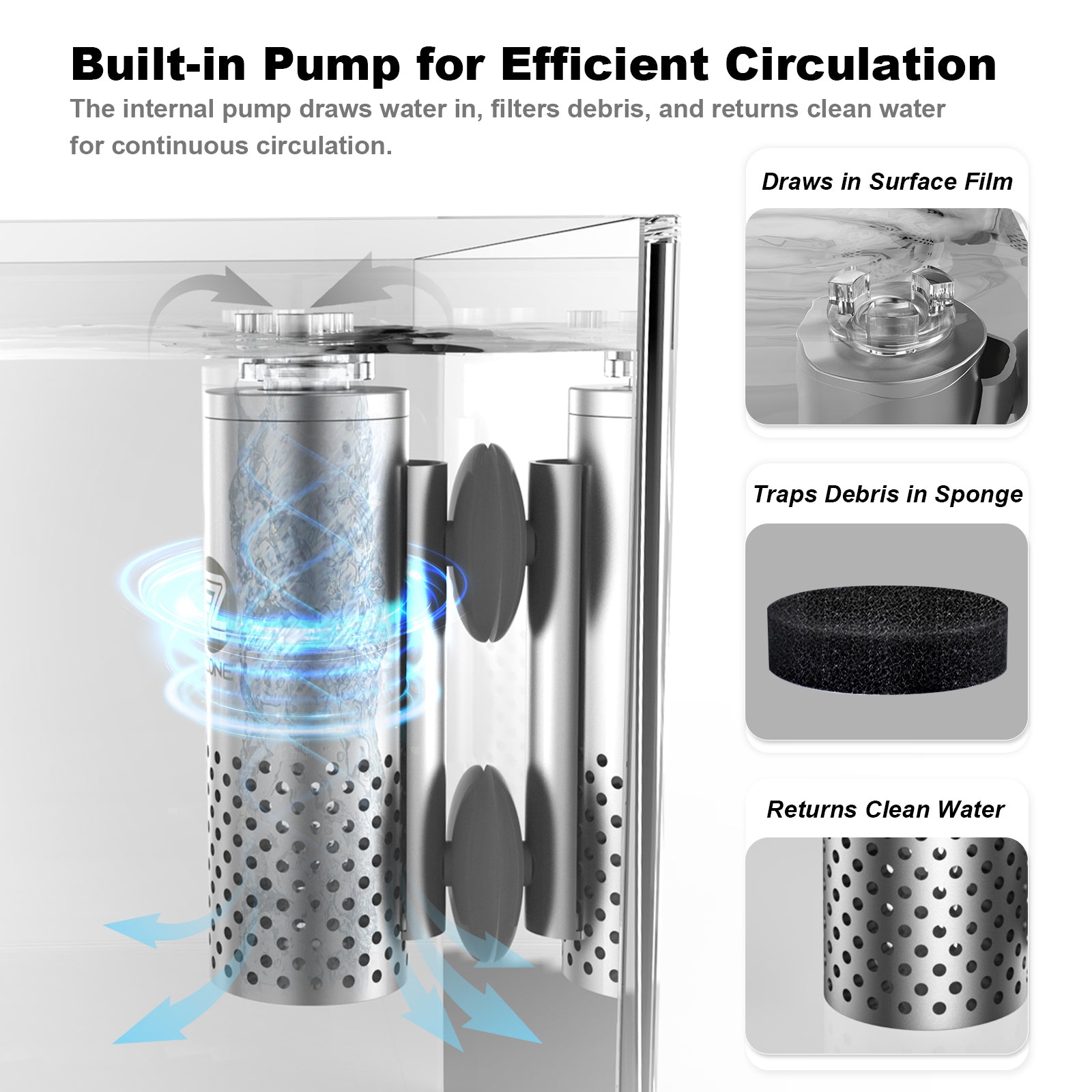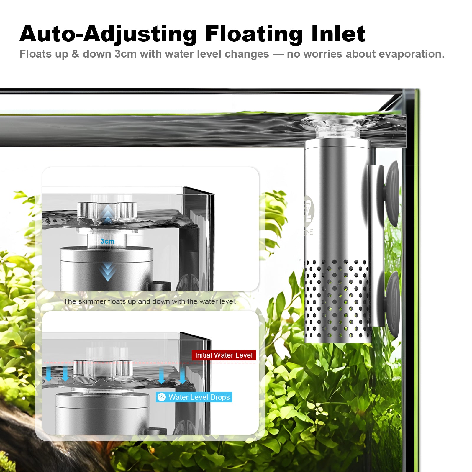 FZONE Aquarium Mini Electric Surface Skimmer for Planted Aquariums