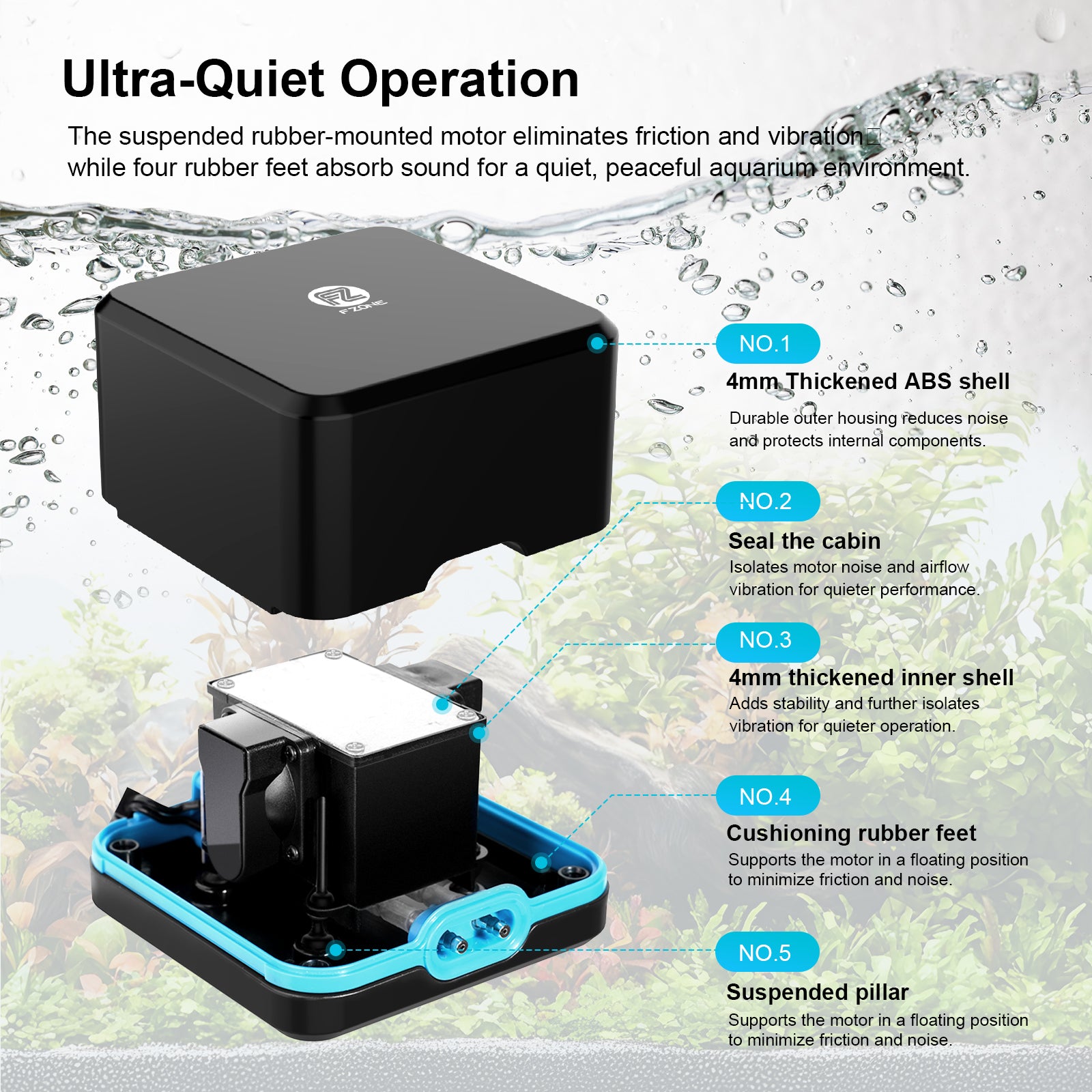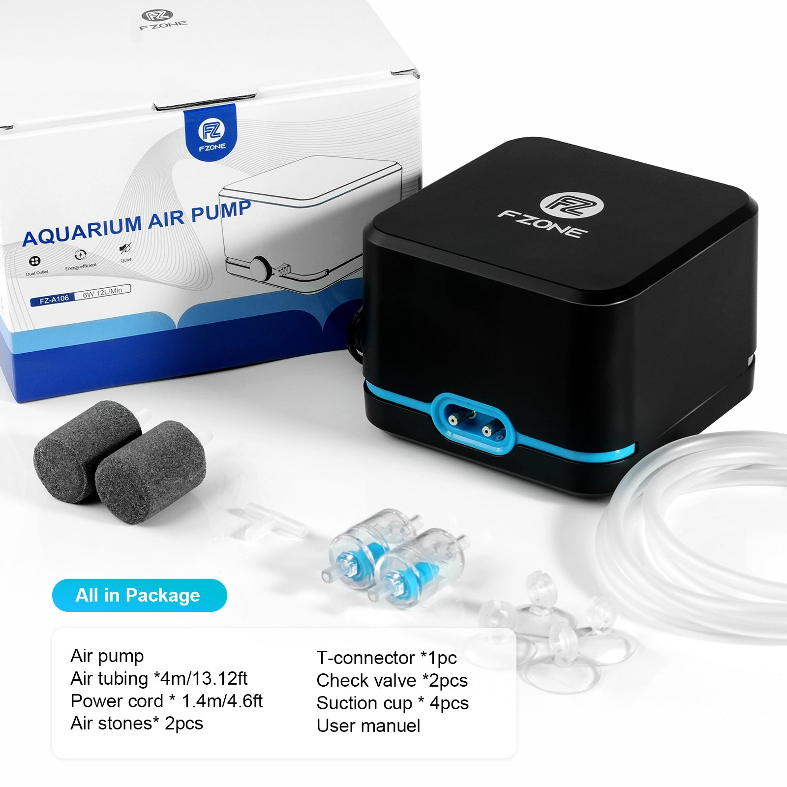 FZONE Aquarium Air Pump, Ultra Quiet Aerator Pump for Freshwater and Saltwater Aquariums