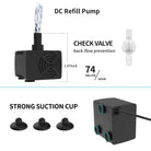 - Micro Whisper Pump: Compact pump for tanks with necks >1.97 inches; 74 GPH, lifts water up to 2 meters, conserving pump life.