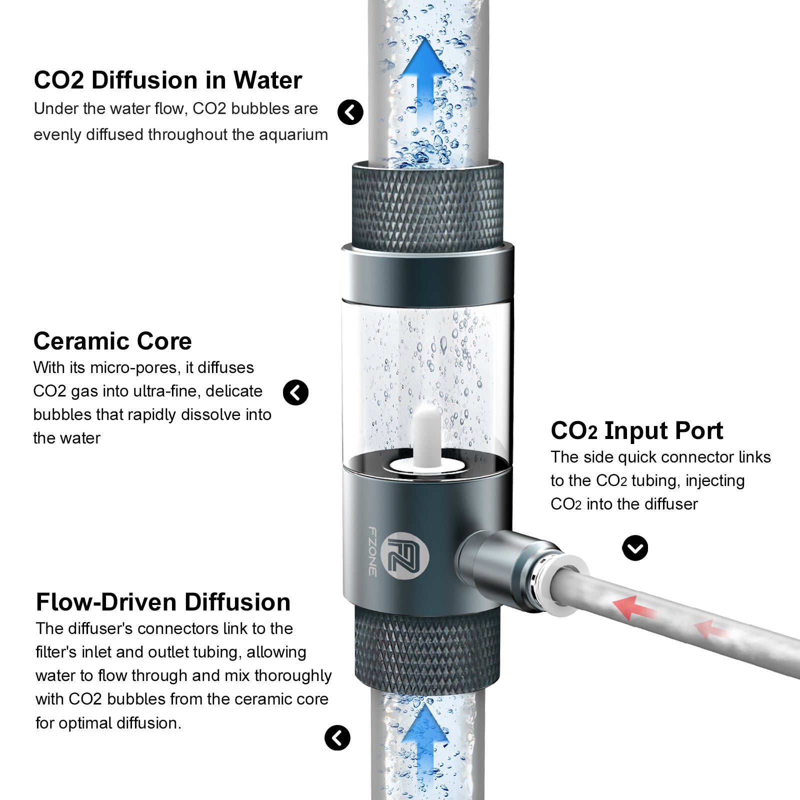 FZONE Inline CO2 Diffuser β Universal Fit for S/M/L, Ceramic Core, 2-Pack