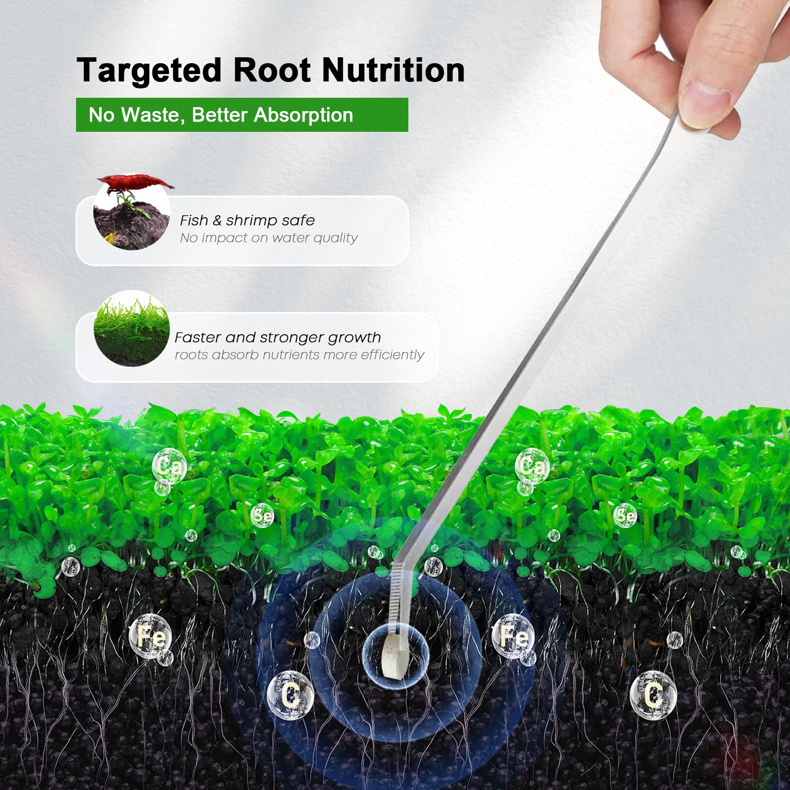 - Direct-to-Root Aquarium Fertilizer : Designed to be placed in the substrate, these aquarium root tablets deliver nutrients directly to plant roots, ensuring fast absorption and strong root growth for aquatic plants.