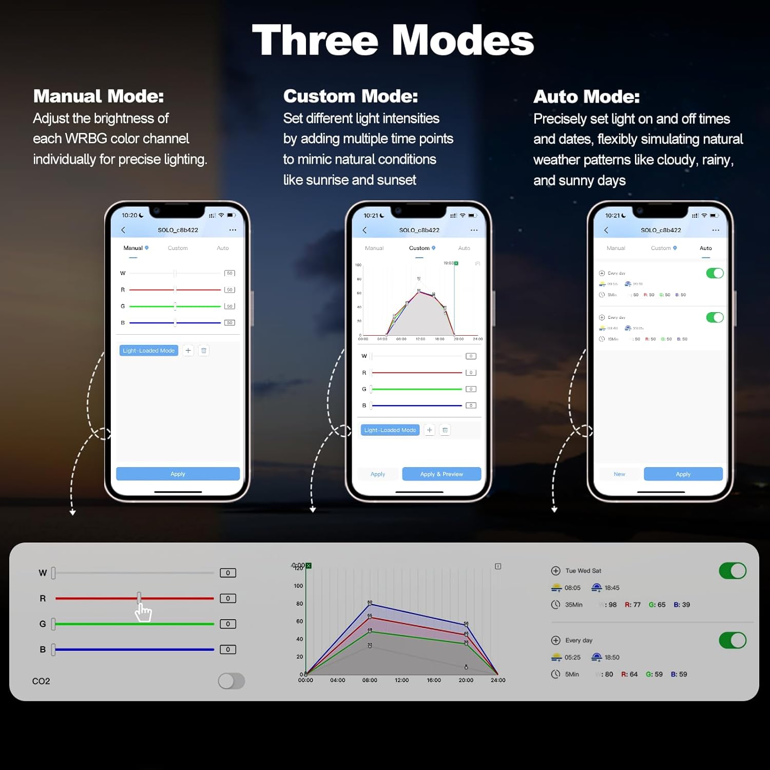 Custom Mode: Program up to 24 time points per day to mimic natural sunrise and sunset patterns, ideal for plant health and a natural rhythm