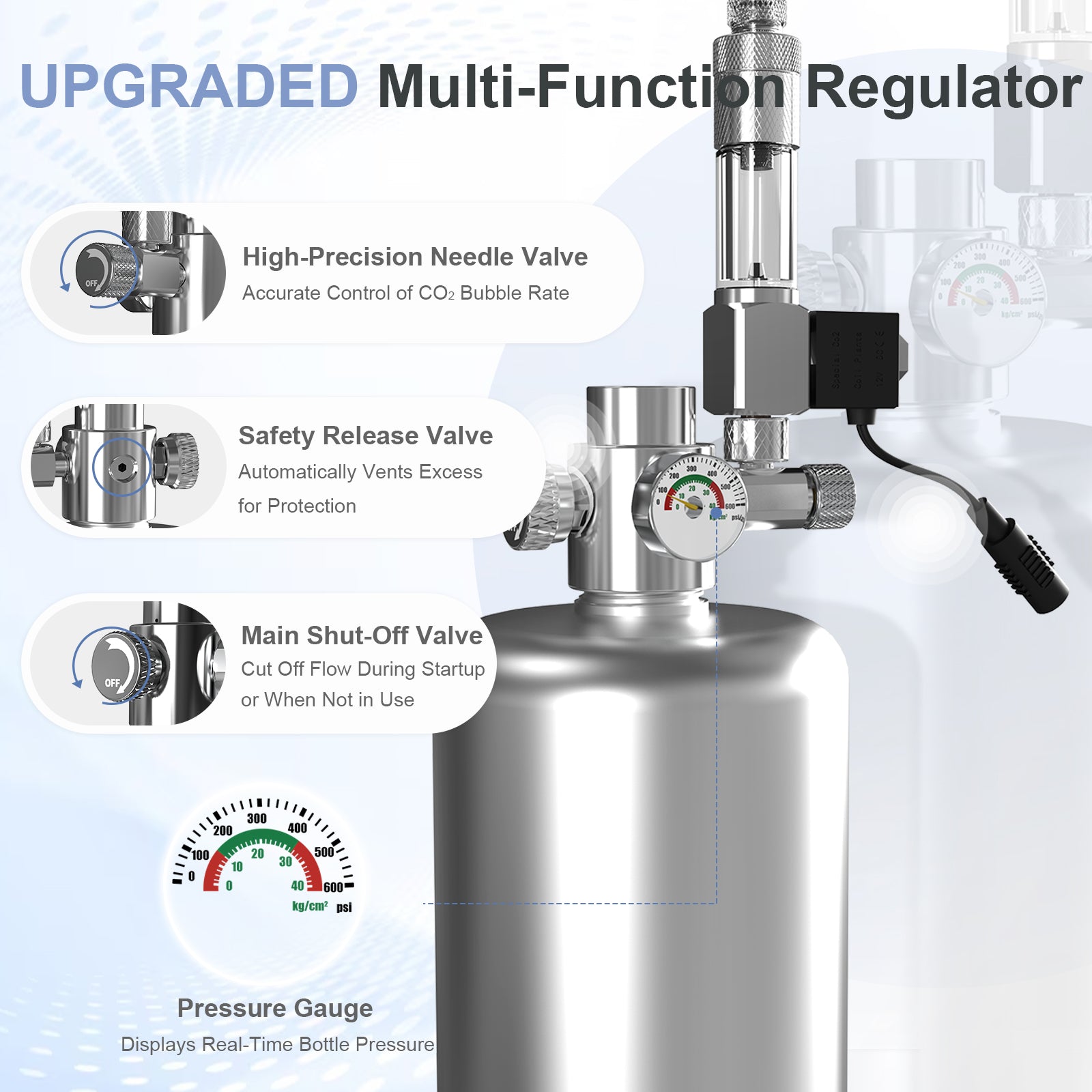MagTool Aquarium CO₂ Generator Kit | 2.5–5L Stainless Steel Bottle with Built-in Solenoid