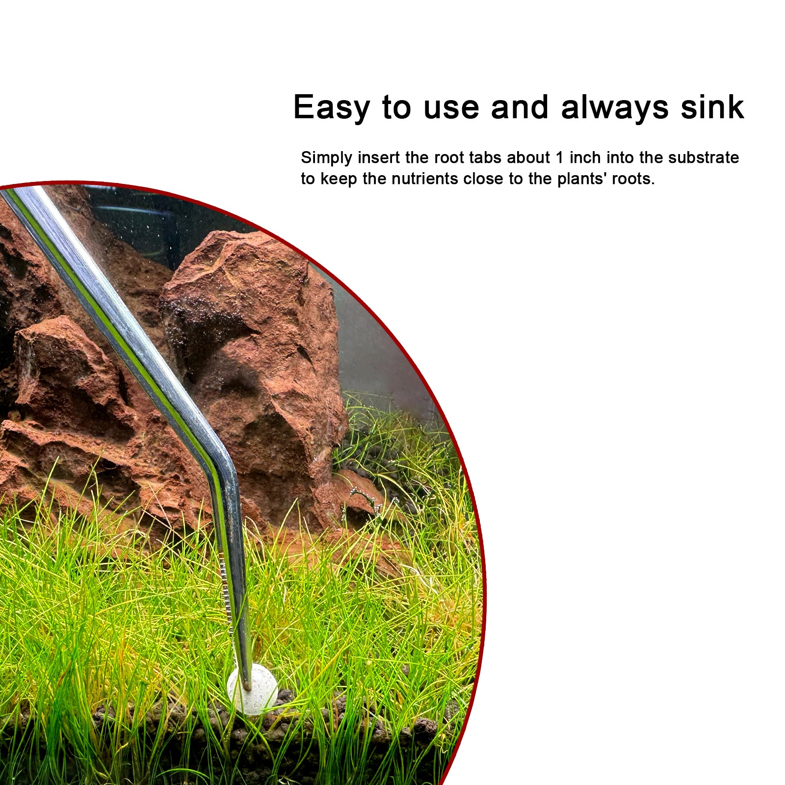 The aquarium root tabs are small and easy to plant using tweezers, requiring less force and depth. This allows for precise placement without disturbing the substrate. They are designed to sink immediately and won’t float, making them convenient to use.