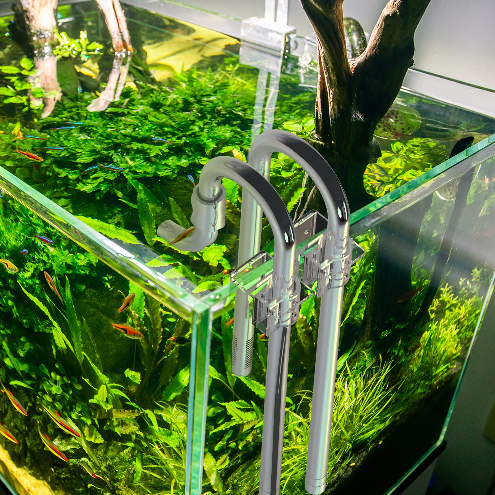 Spin 360 degrees with fully adjustable rod to eliminate 100 percent air noise trapped in the filter. The flow rate is adjustable by turning the knob above the water line, or turning the flow block under the water.