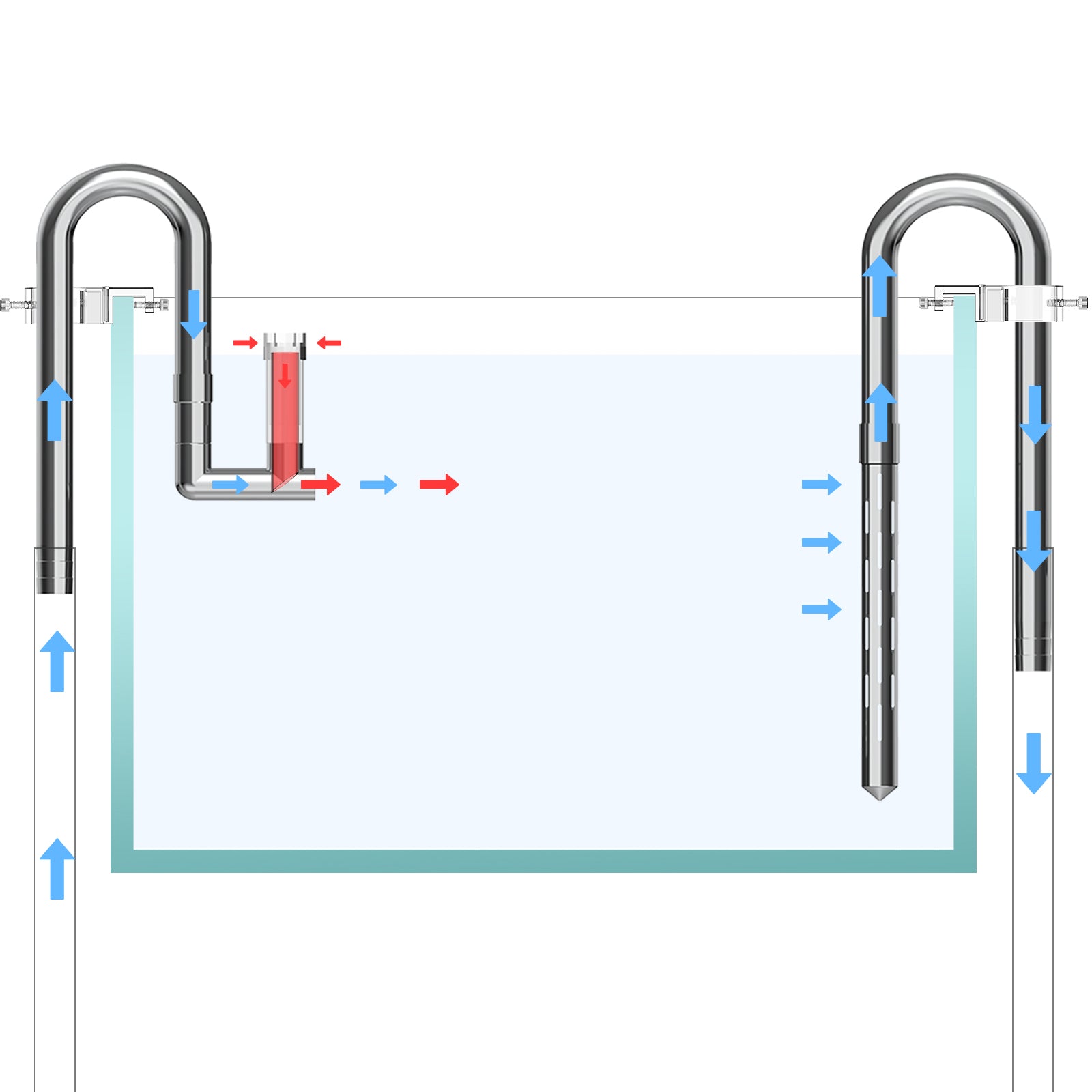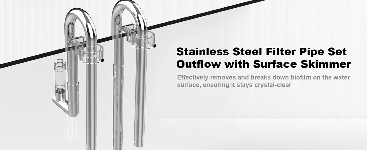 As water flows through the outflow pipe, a low-pressure zone is created around the outlet, effectively drawing in surface water along with oil films and debris.Which not only improves water clarity but also enhances oxygen exchange, fostering a healthier and more balanced aquarium ecosystem.