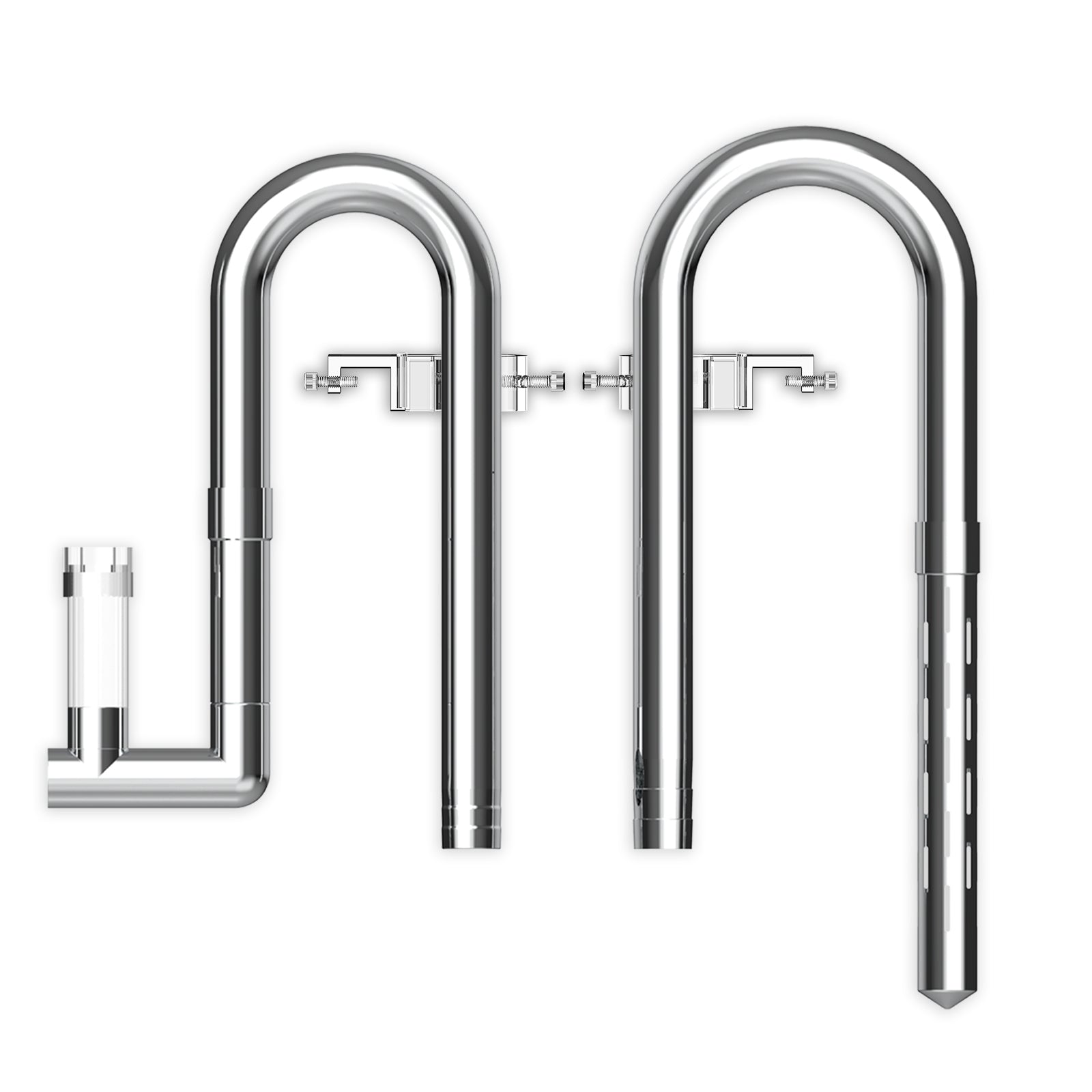 - Set Includes: 1 x stainless steel outlet pipe, 1 x stainless steel inlet pipe, 2 x acrylic pipe fixers
