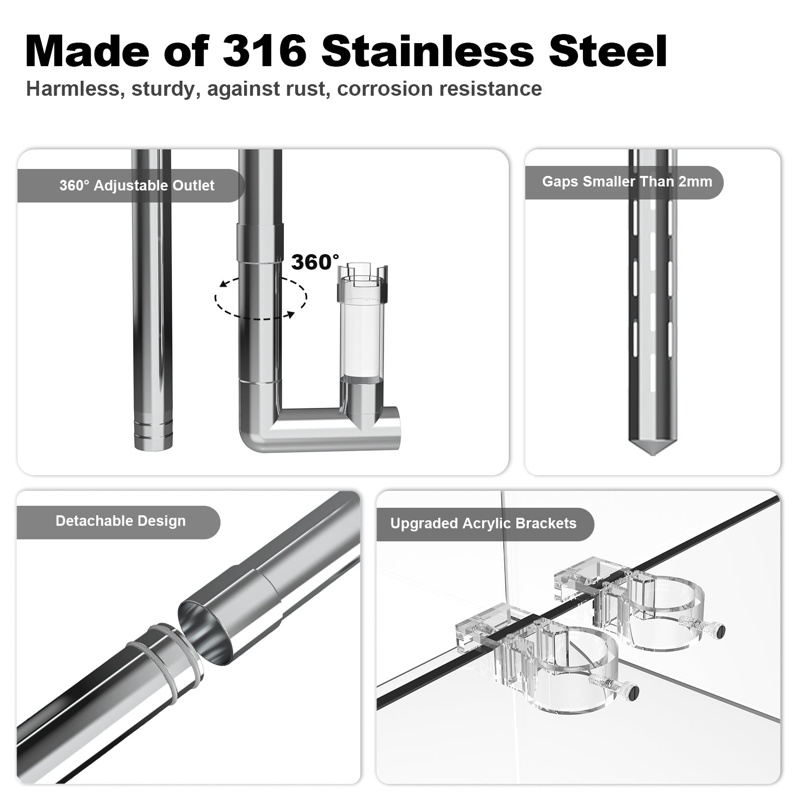 - 316 Stainless Steel: Corrosion-resistant with 360° adjustable outflow for optimal circulation.