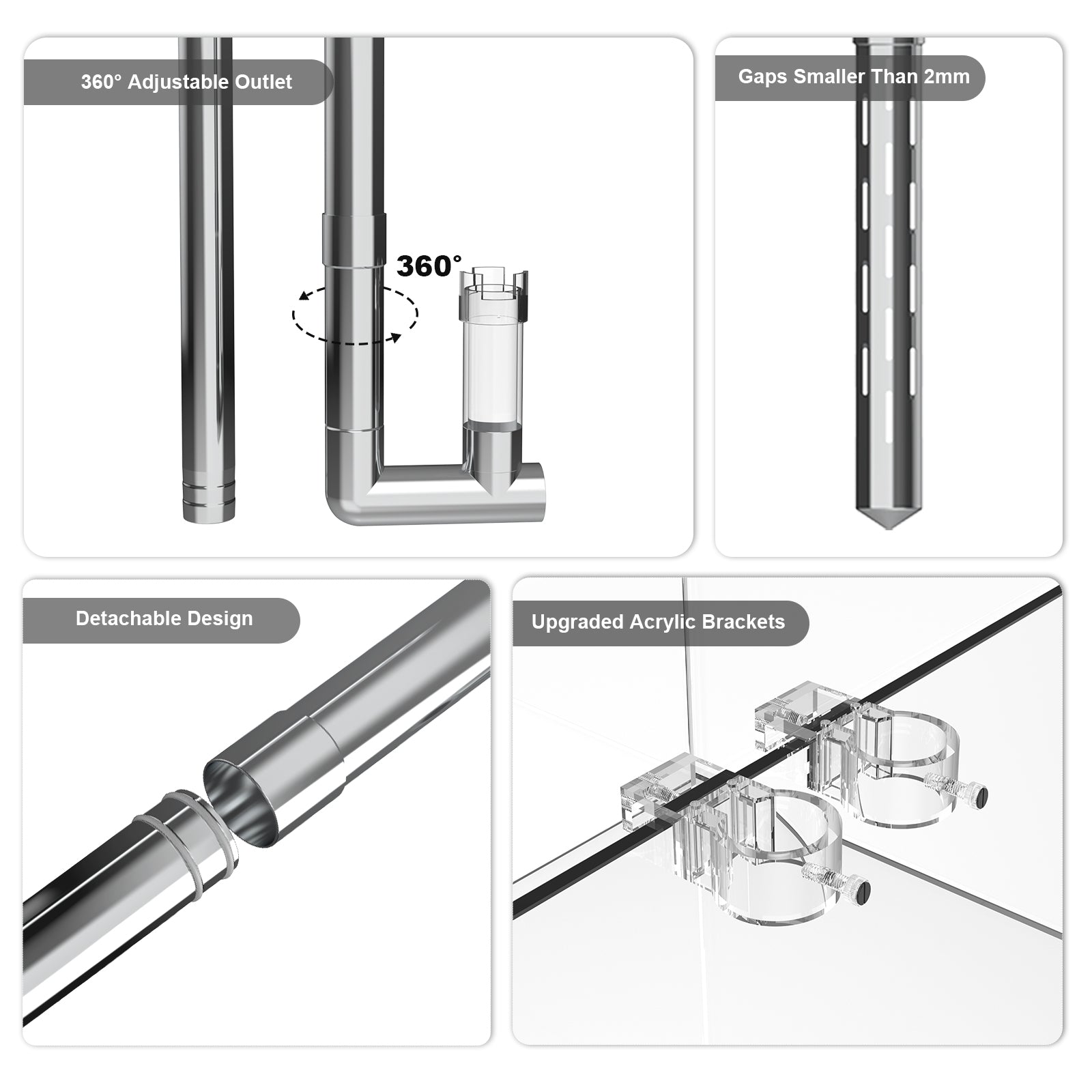- Upgraded Surface Skimmer: Removes oil films and debris for a clear aquarium surface.