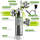 - Design: CO₂ generator system using citric acid and sodium bicarbonate reaction, Integrated regulator with bubble counter and pressure gauge, External thread bottle with built-in fill port