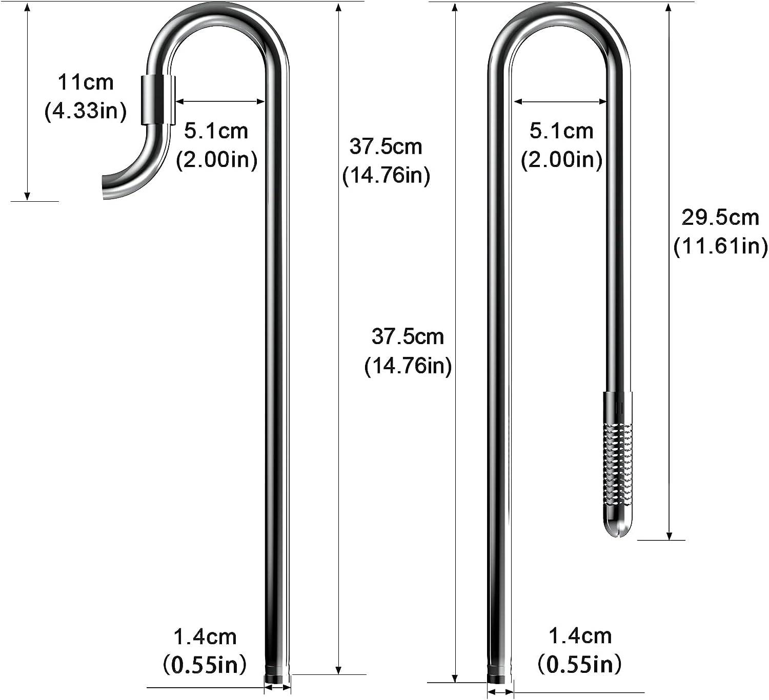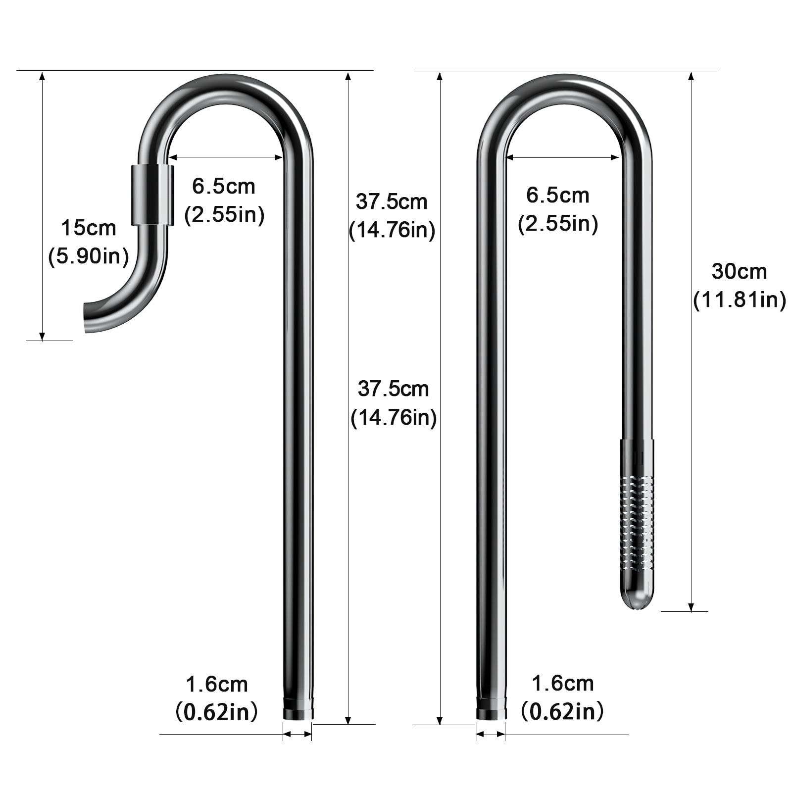 - Includes:1 × Stainless steel inflow pipe、1 × Stainless steel outflow pipe、2 × Acrylic holders
