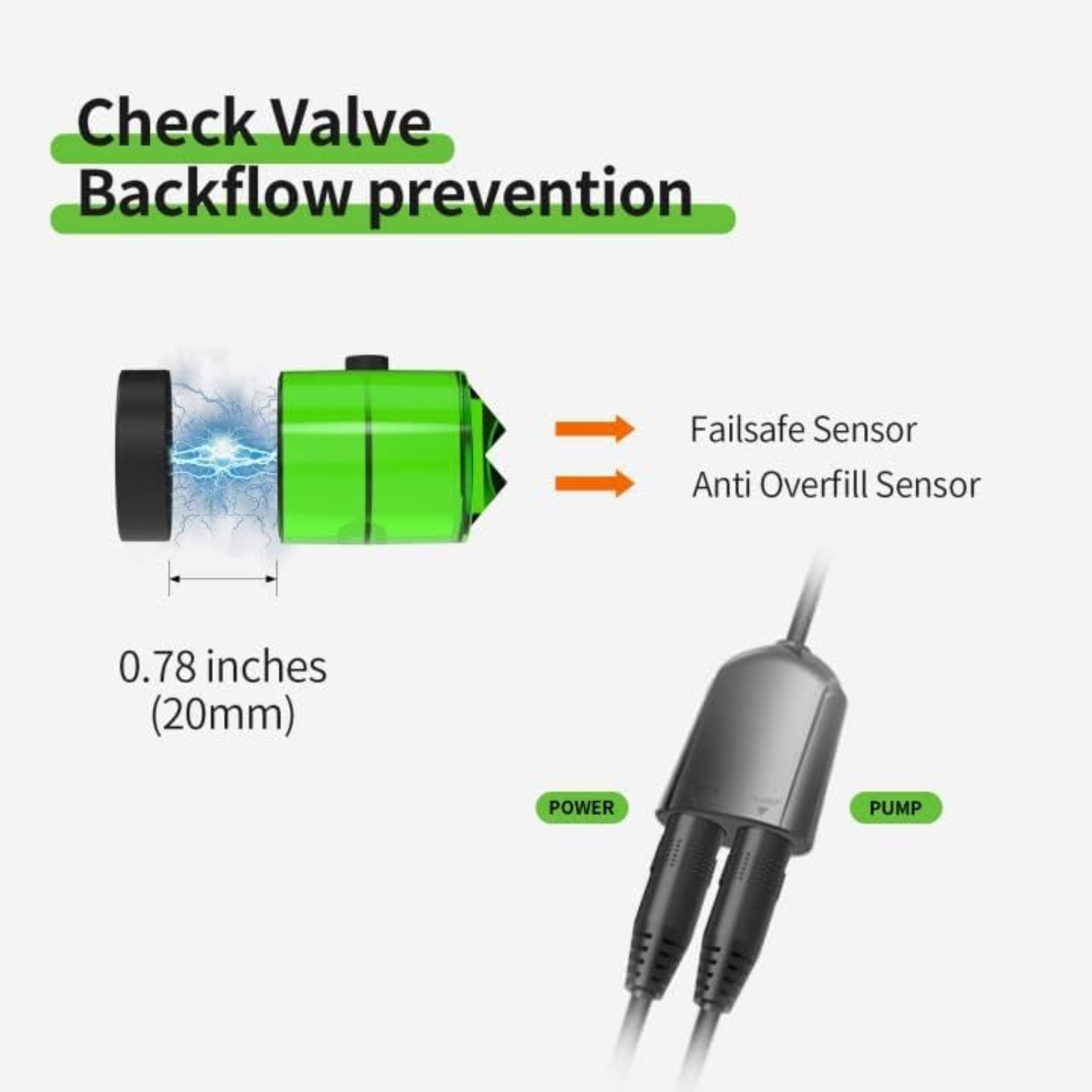 Check valve for backflow prevention, failsafe anti-overfill sensor, and compact 0.78 in (20 mm) pump provide stable, safe, and efficient water management for your aquarium.