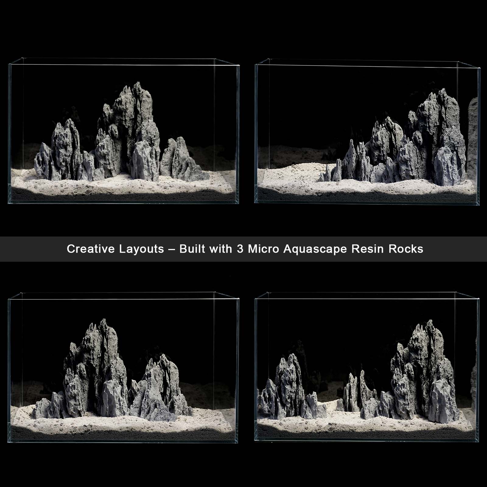 - Flexible Aquascaping in 3 Sizes: This resin rock series feature seiryu stone textures and balanced shapes for easy arrangement. Available in large, medium, and small sizes—each piece can be purchased individually or combined freely to create mountain ranges, canyons, Iwagumi layouts, or stream-like scapes. A simple way to add depth and natural style to any aquarium.