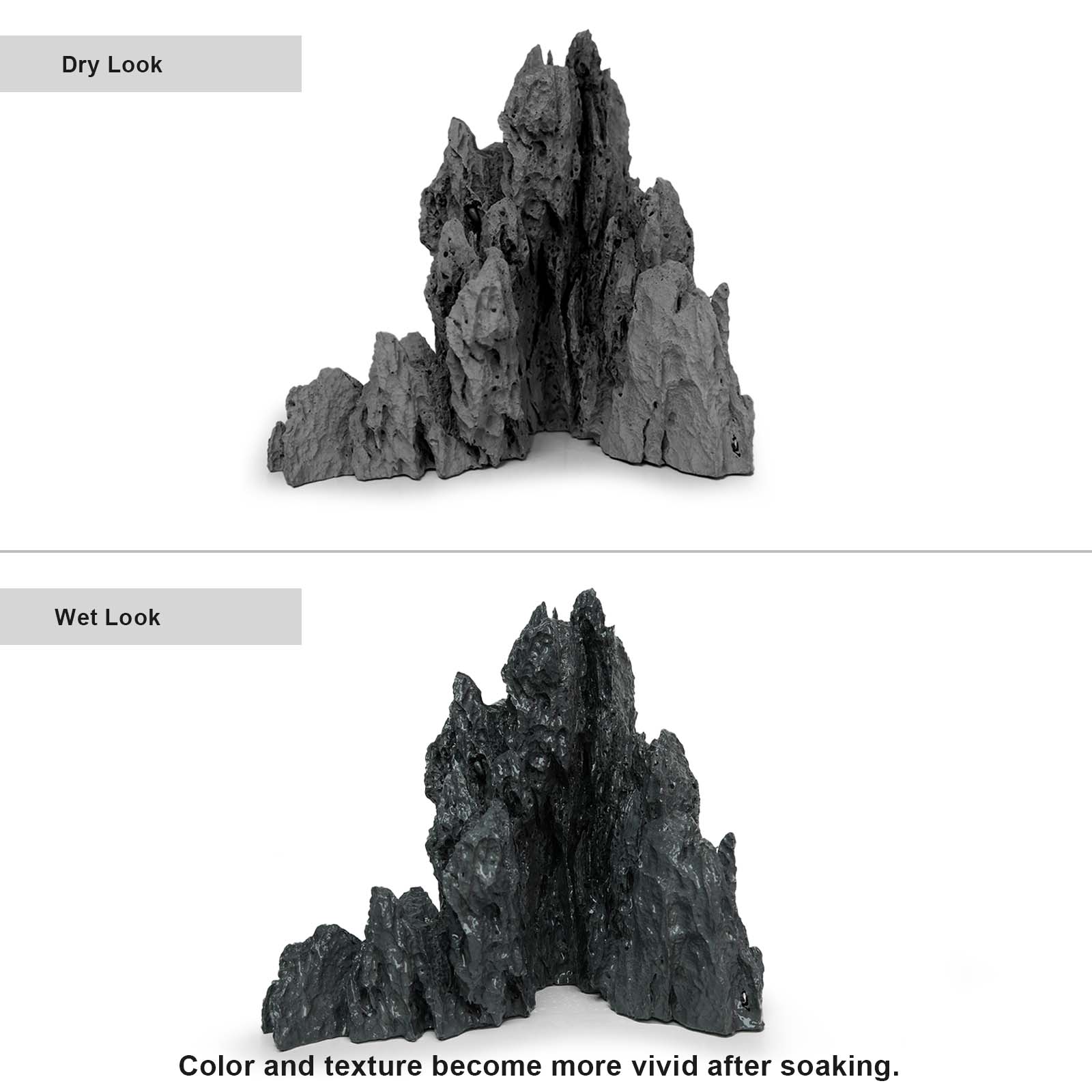 - 100% Safe and Non-Toxic:Crafted from eco-friendly resin, the aquarium seiryu rock is completely harmless to fish and plants, with no effect on water quality or pH levels. The seriyu rocks for aquairum are light gray when dry but darken once submerged, creating a more natural, stone-like look for an authentic aquascape.