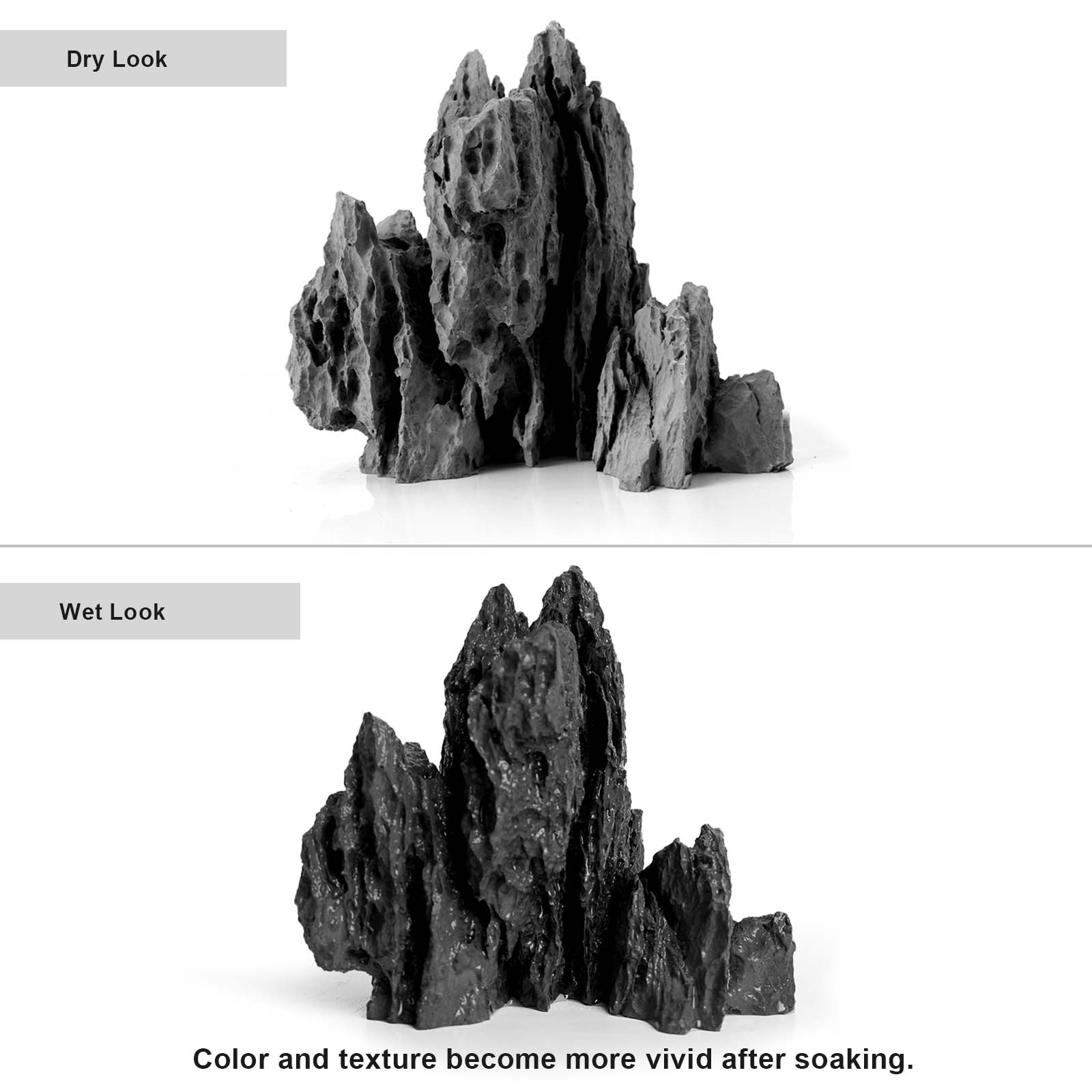 - 100% Safe and Non-Toxic:Crafted from eco-friendly resin, the aquarium seiryu rock is completely harmless to fish and plants, with no effect on water quality or pH levels. The seriyu rocks for aquairum are light gray when dry but darken once submerged, creating a more natural, stone-like look for an authentic aquascape.