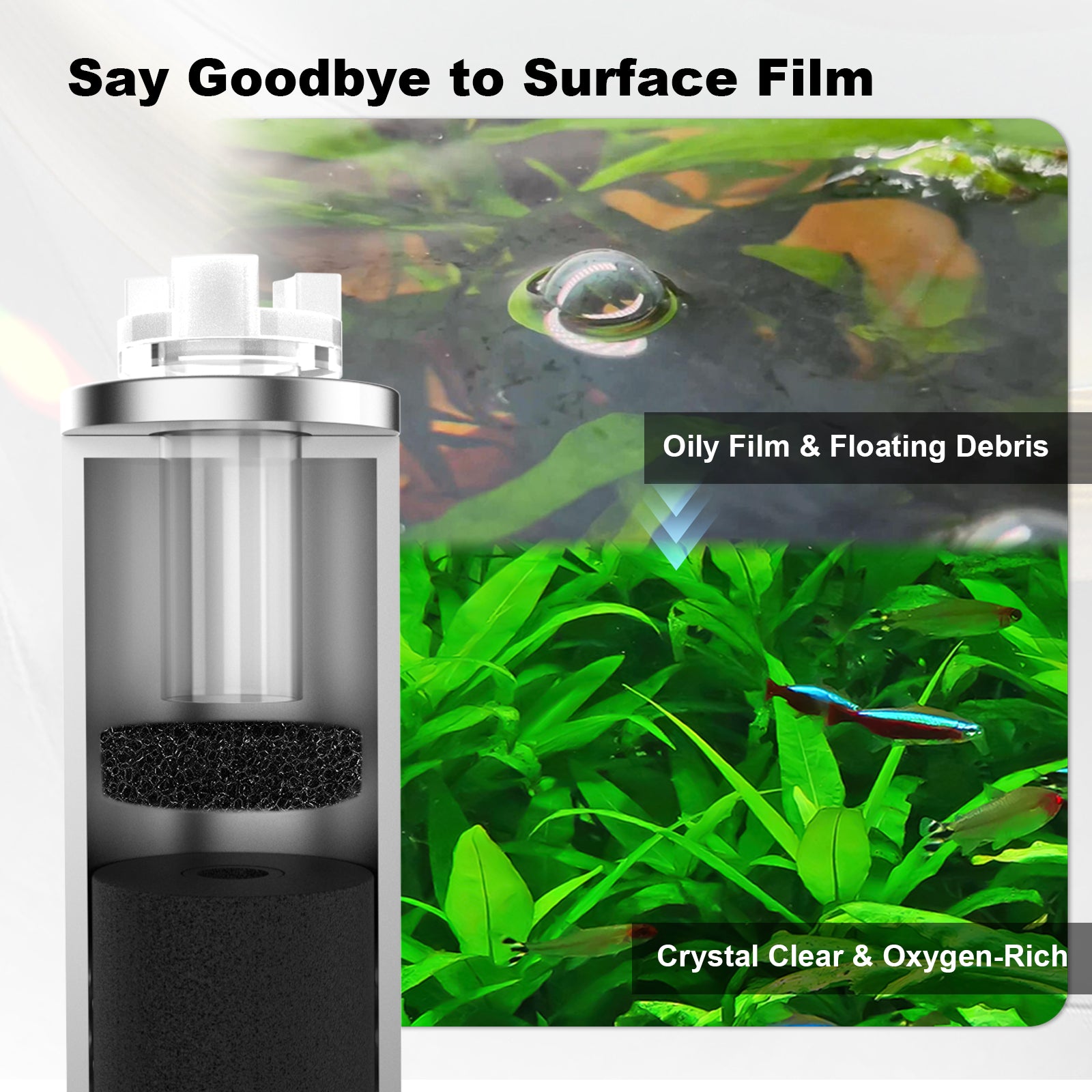 - Keeps Surface Crystal Clear — Removes oily film and dust that small filters can’t handle, improving oxygen and CO₂ exchange.