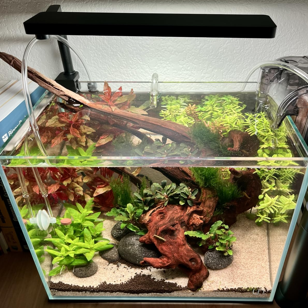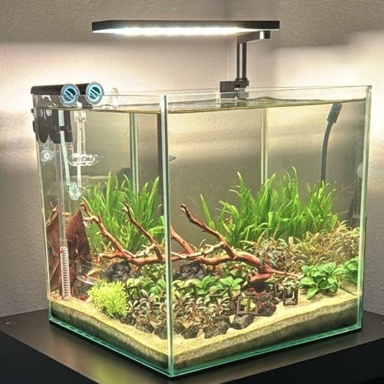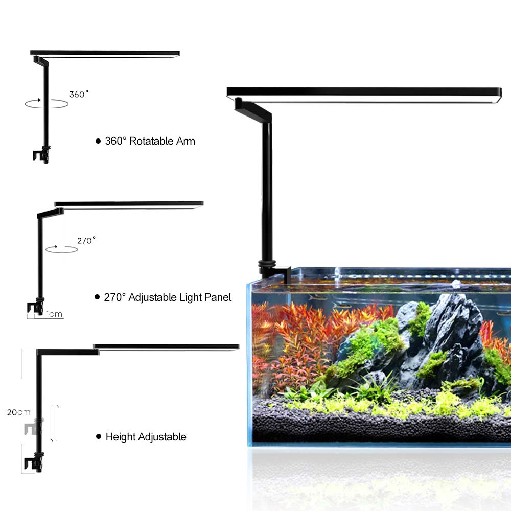 Designed for rimless aquariums with glass thickness under 8mm, the adjustable stand offers flexible height control, a 270° rotating light panel, and a 360° rotating mount. Compatible with tanks ranging from 20–50 cm, making it ideal for nano aquariums and Wabi-Kusa setups.