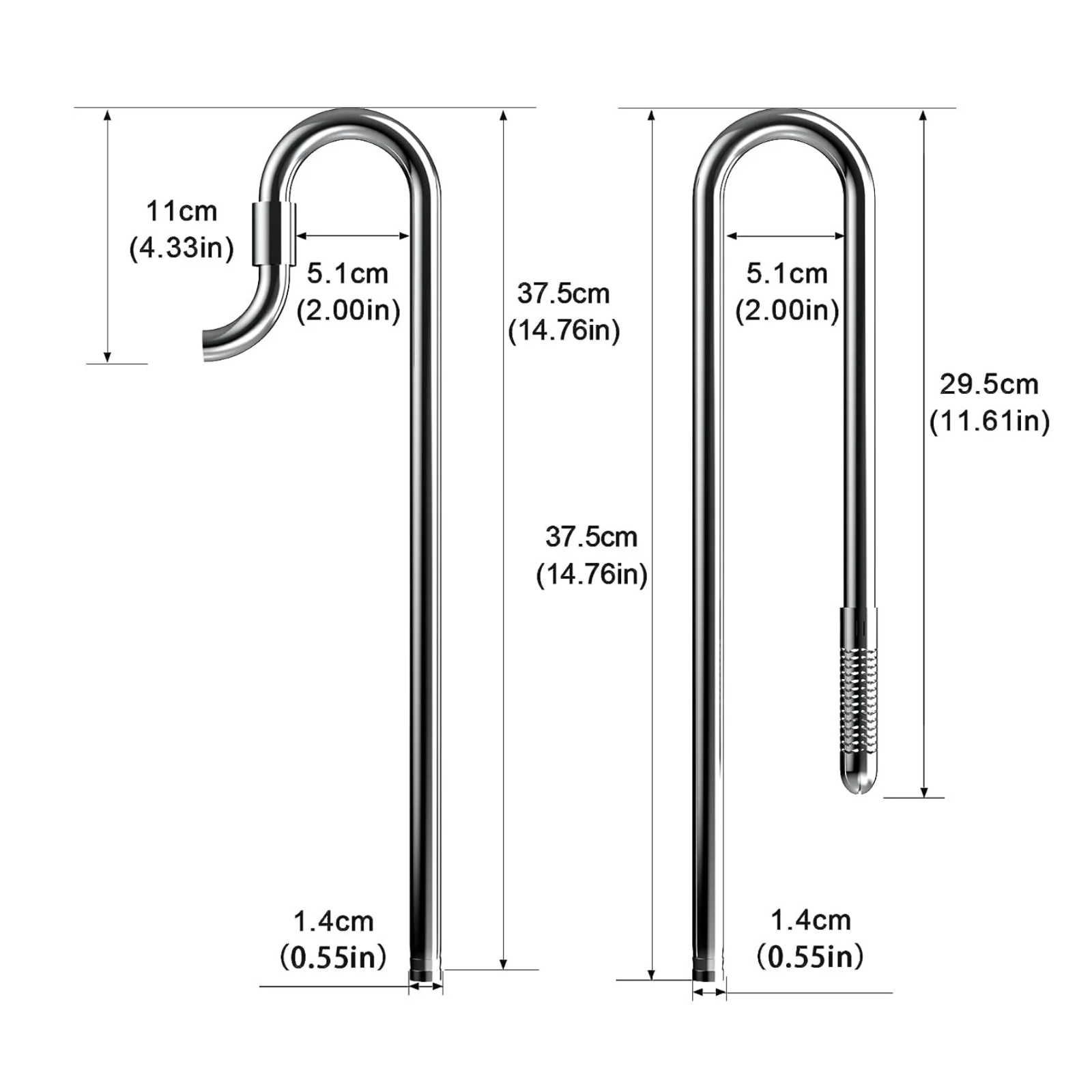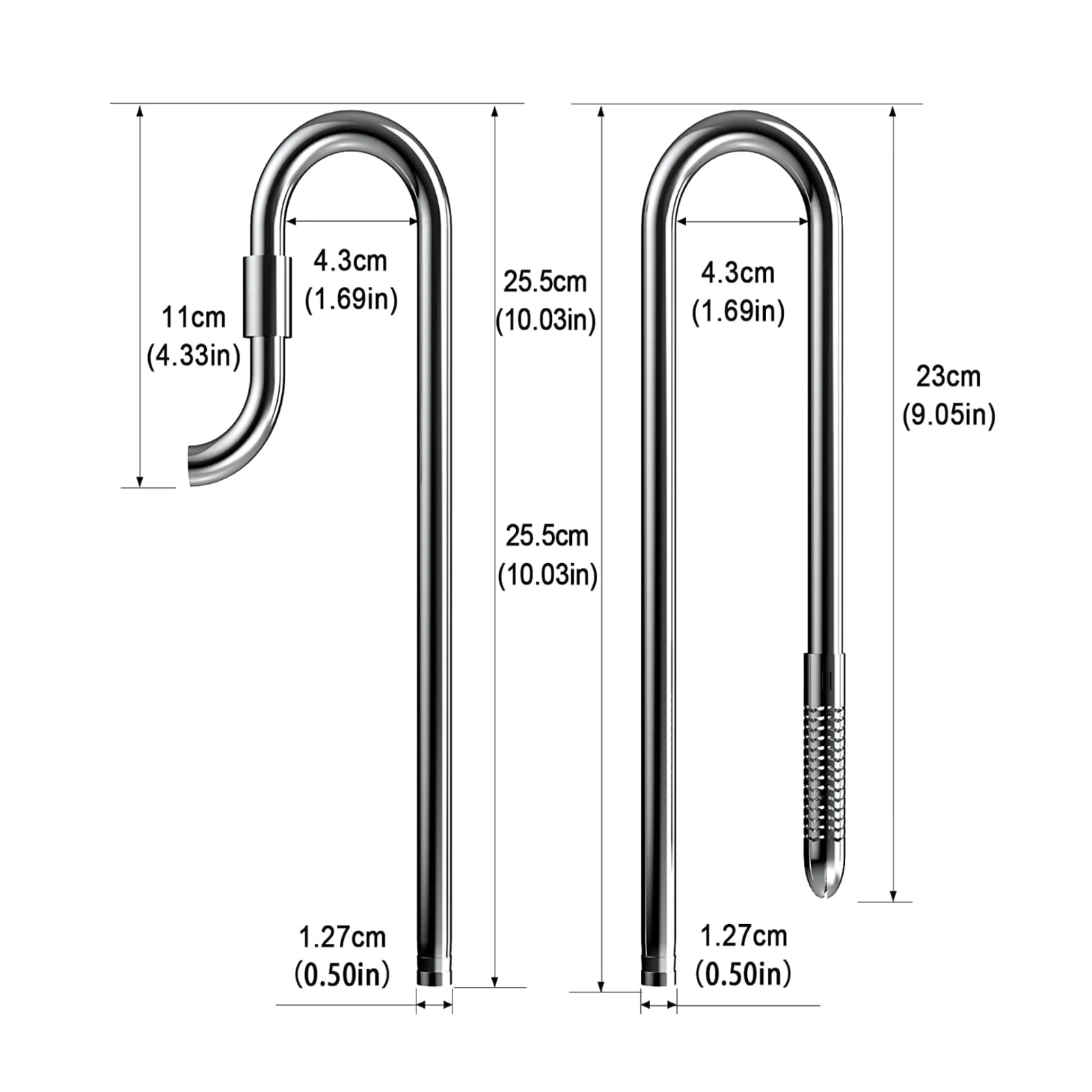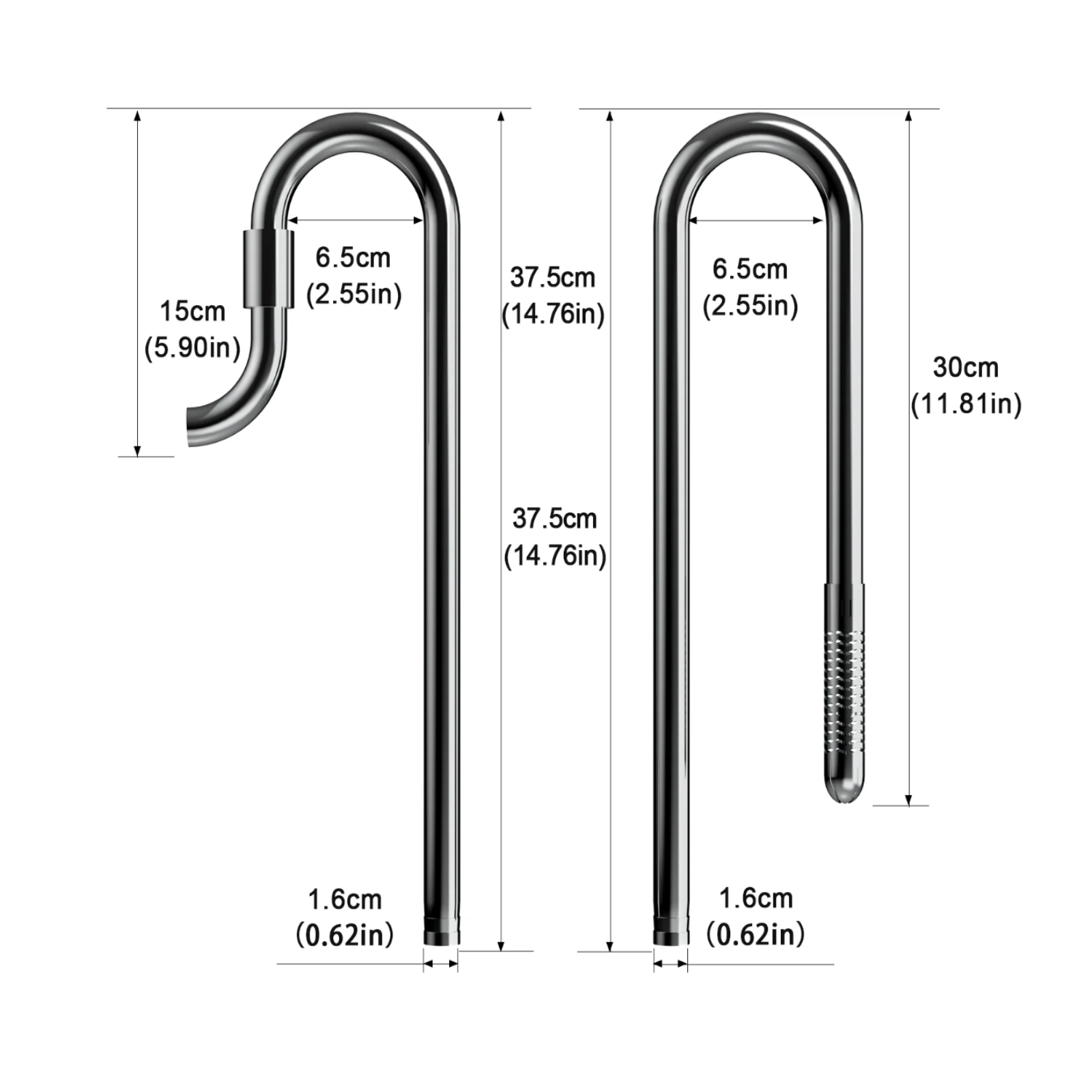 - Includes:1 × Stainless steel inflow pipe、1 × Stainless steel outflow pipe、2 × Acrylic holders