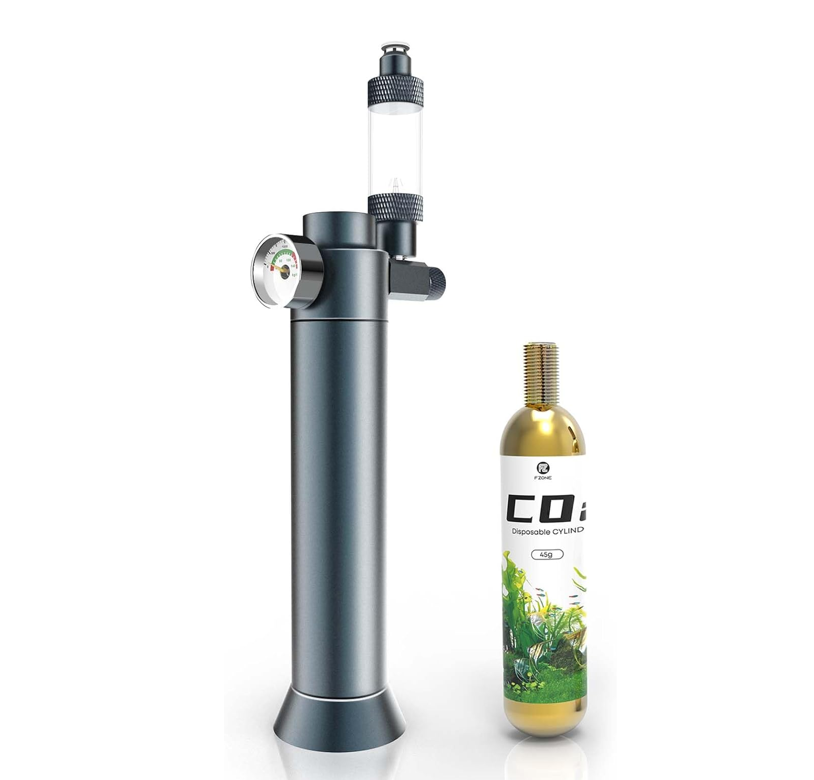 Perfect for small or desktop aquariums, with a slim design (9.84" tall, 1.96" wide) for easy one-handed use.Compatible with 5/8" & 3/8" CO2 Cartridges: Fits standard 5/8" cylinders, includes 3/8" adapter—no extra converters needed.